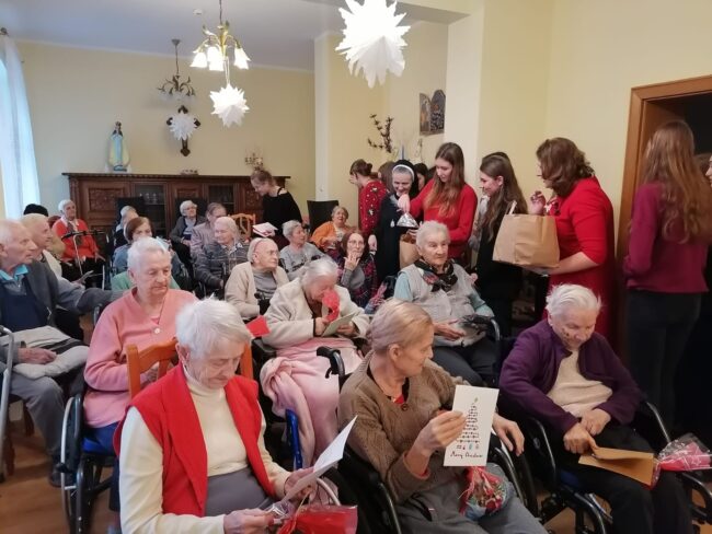 Młodzież złożyła życzenia naszym Mieszkańcom i wręczyła piękne kartki świąteczne oraz drobne prezenty.