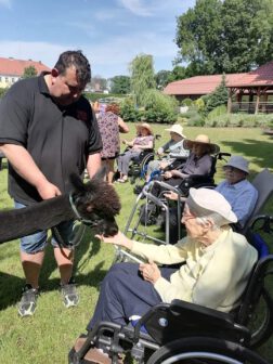 Każdy z nas wie i czuje, że kontakt z naturą oraz przyrodą jest istotnym elementem naszego życia. Do tego aspektu nawiązuje silvoterapia, czyli metoda terapeutyczna oparta na kontakcie z przyrodą. Służą temu spacery, przebywanie na tarasie, w ogrodzie i podziwianie otaczającej zieleni. Dużym zainteresowaniem wśród mieszkańców cieszy się dogoterapia. Kontakt ze zwierzęciem tak „wdzięcznym” jak pies, poprawia nastrój, daje możliwość dodatkowych doznań sensorycznych dla uczestników, otwiera na otoczenie poprzez dotyk, głaskanie i reakcję na zachowanie zwierzęcia. Wdzięcznymi zwierzętami o miłym usposobieniu i miękkim futrze są też alpaki, które u nas goszczą i są bardzo lubiane przez mieszkańców.