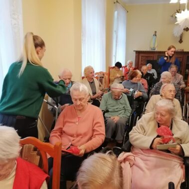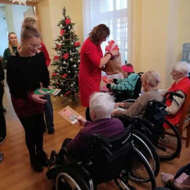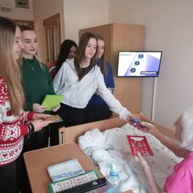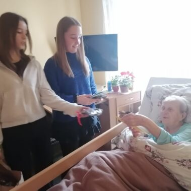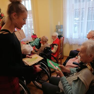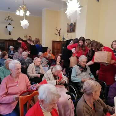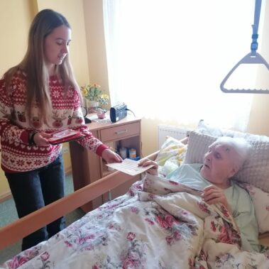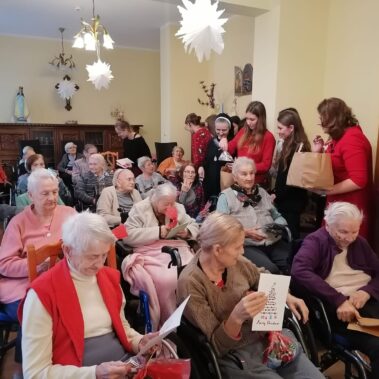 Młodzież złożyła życzenia naszym Mieszkańcom i wręczyła piękne kartki świąteczne oraz drobne prezenty😄