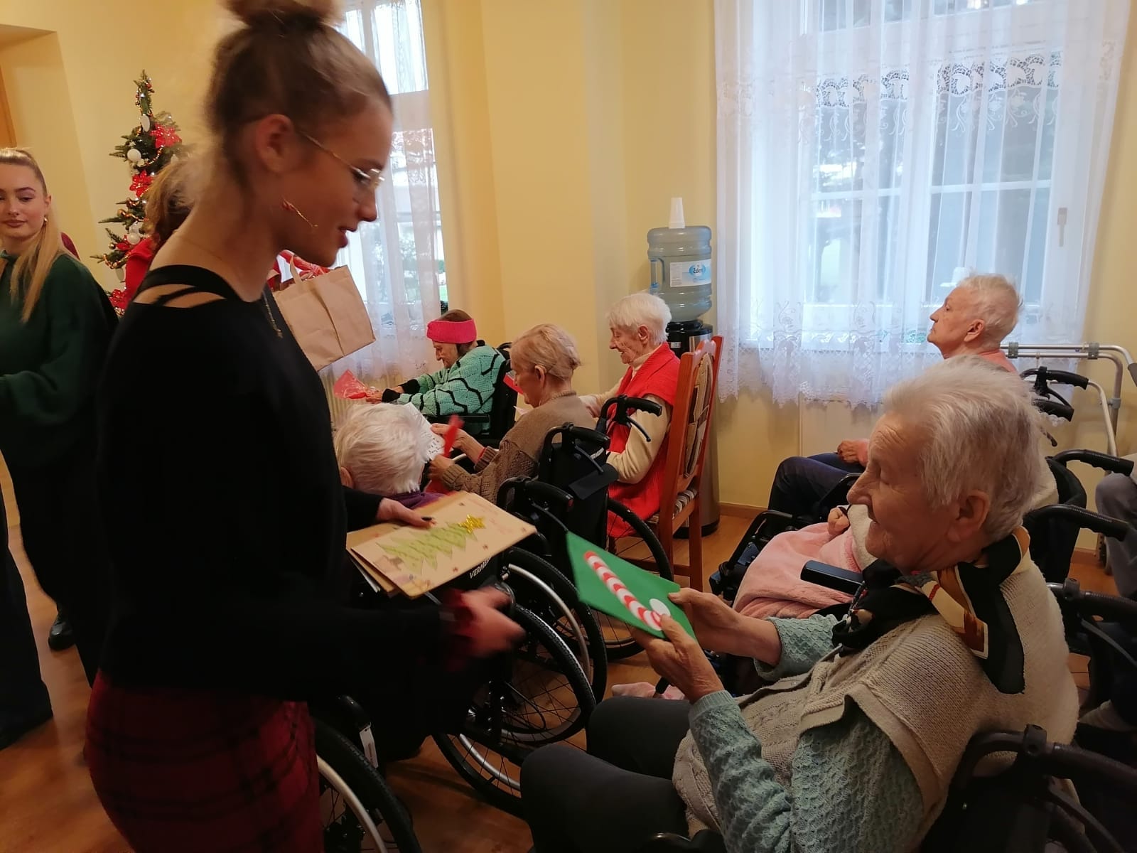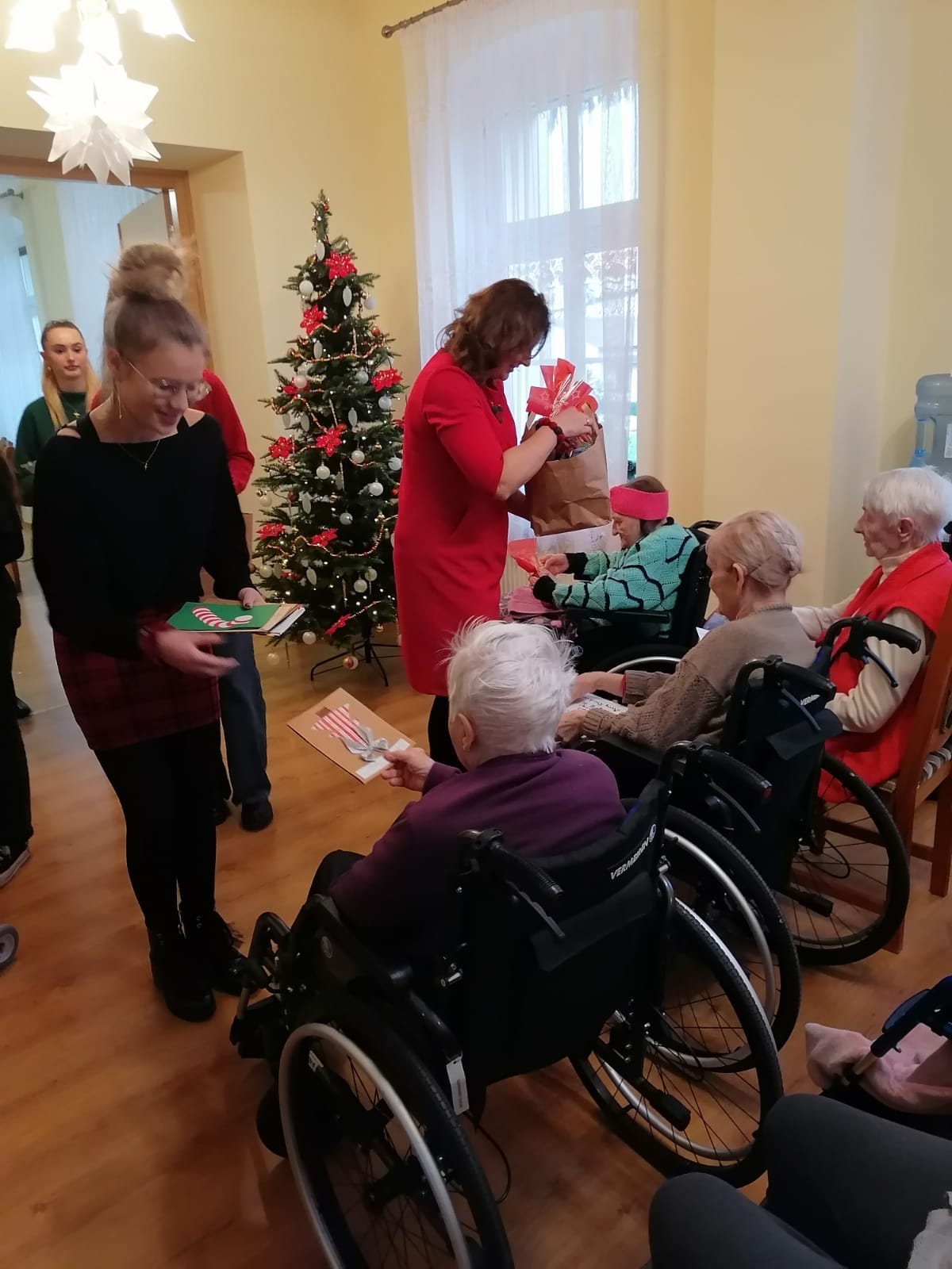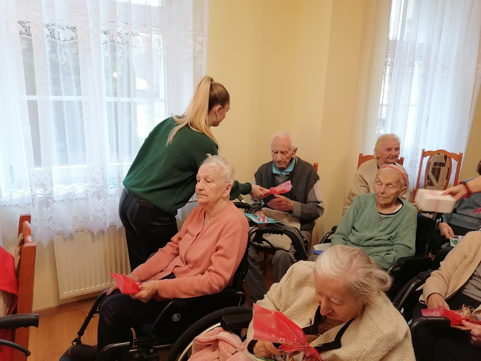 Młodzież złożyła życzenia naszym Mieszkańcom i wręczyła piękne kartki świąteczne oraz drobne prezenty😄