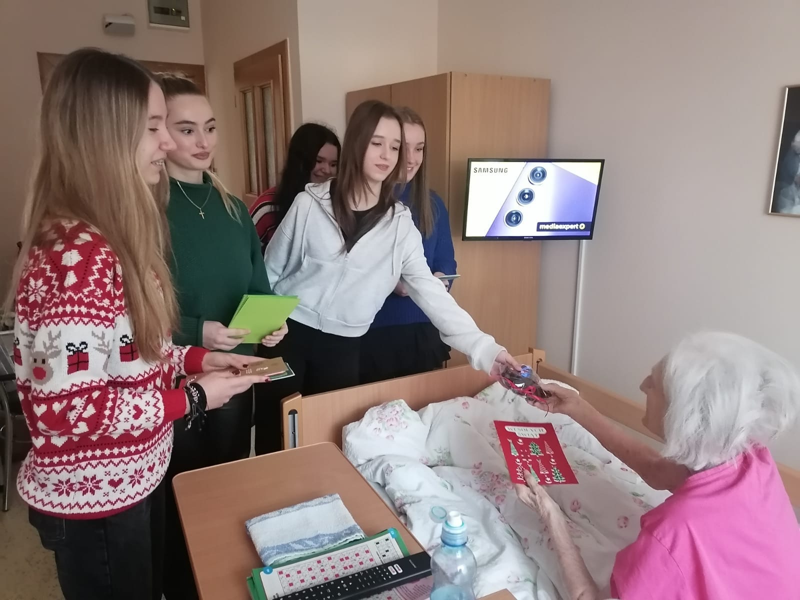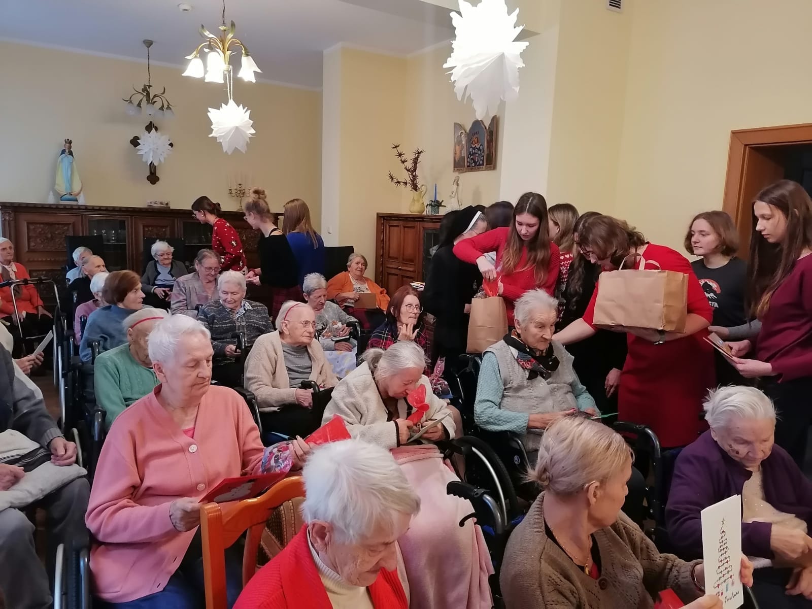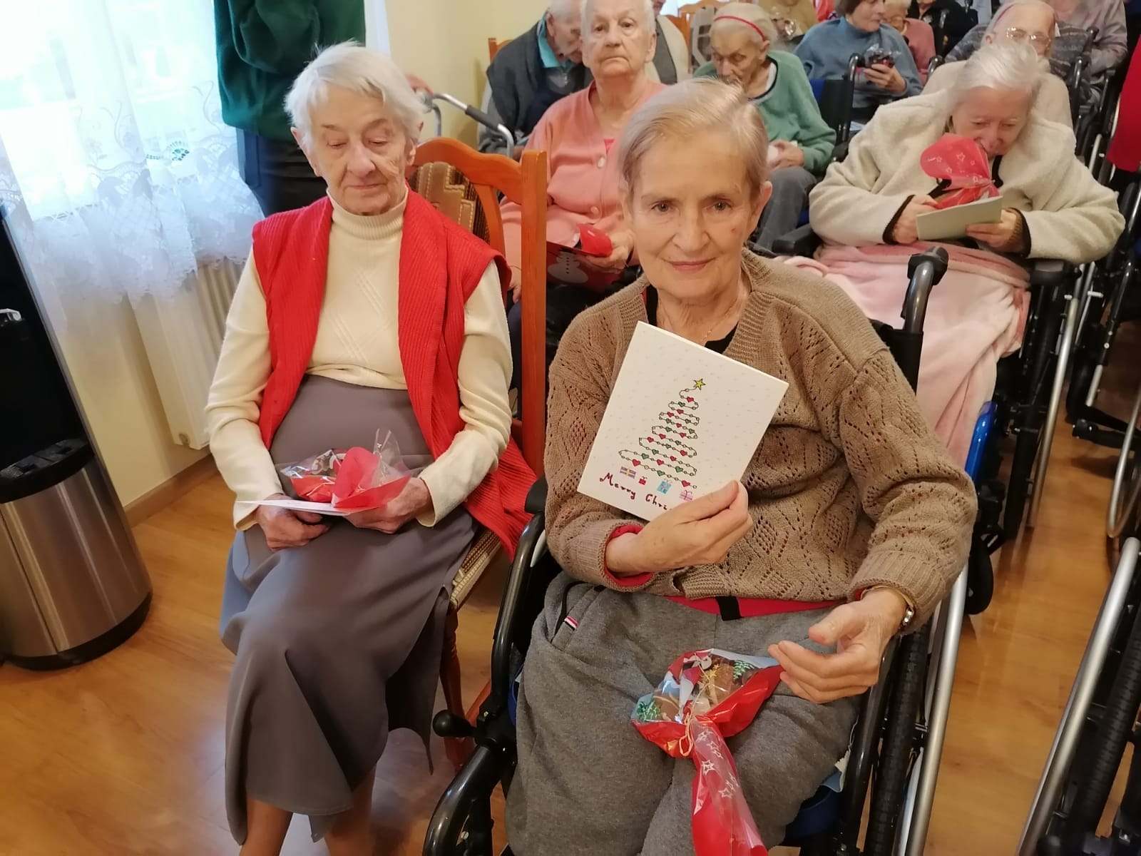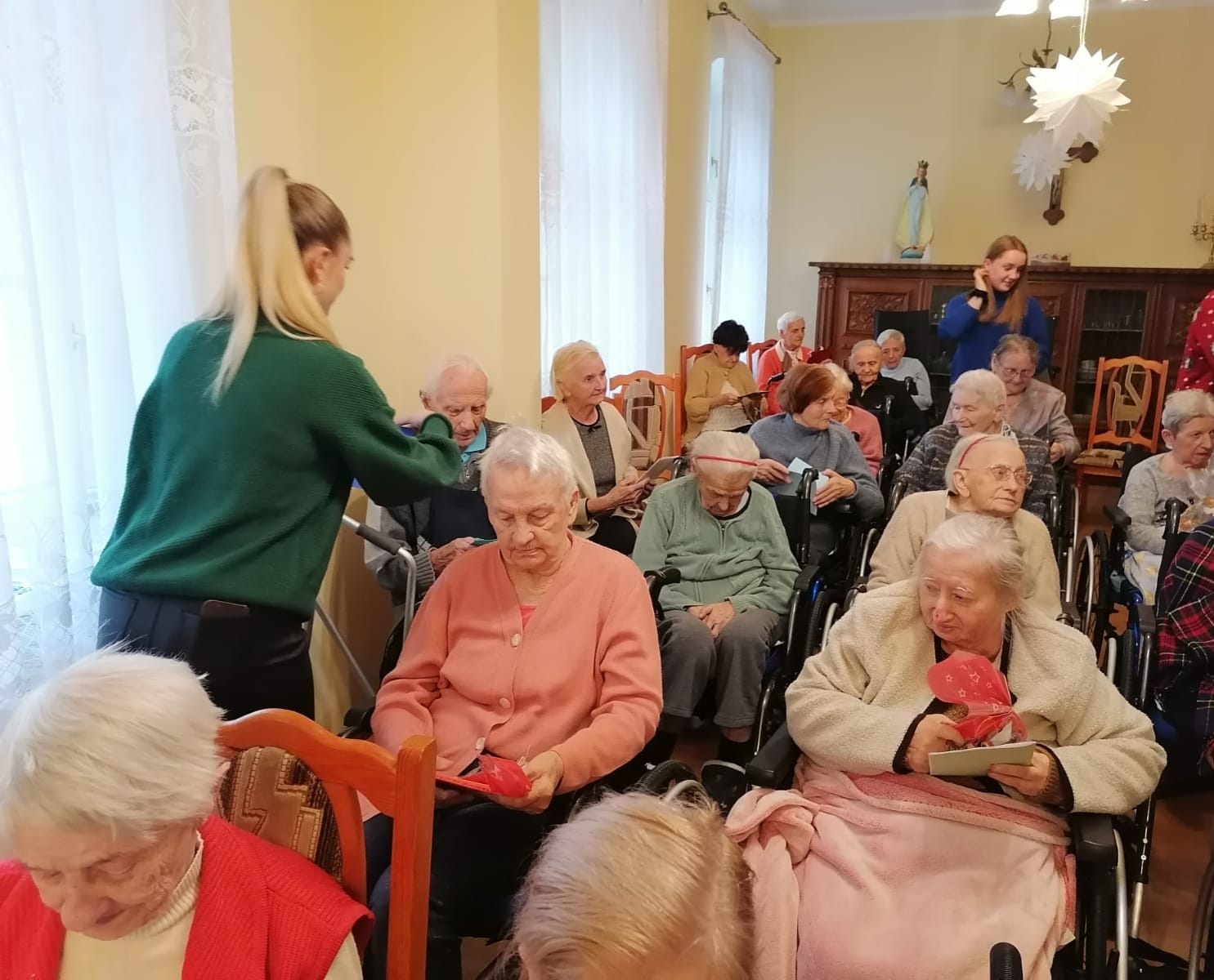 Młodzież złożyła życzenia naszym Mieszkańcom i wręczyła piękne kartki świąteczne oraz drobne prezenty😄