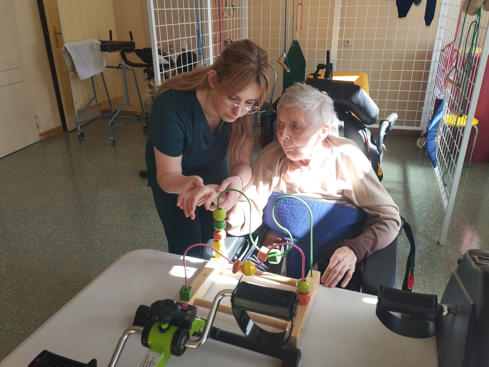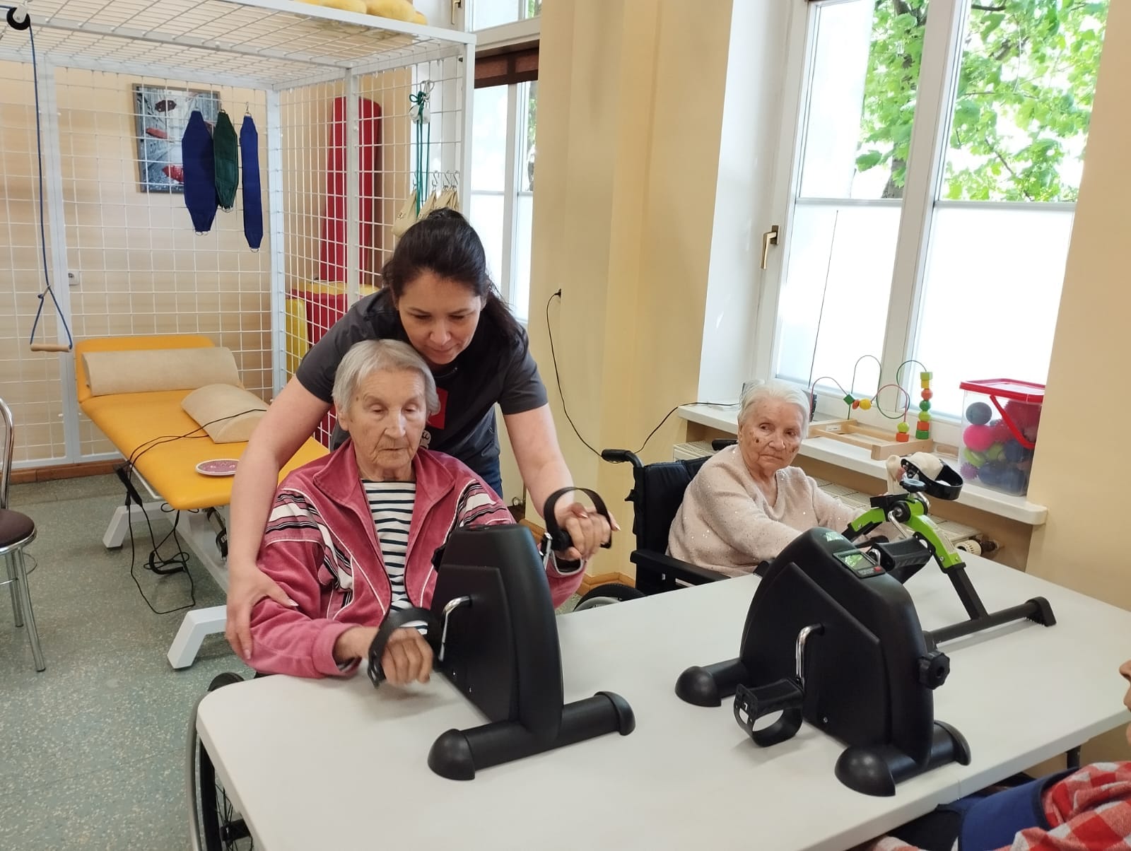 Rehabilitacja osób starszych jest niezwykle istotnym elementem naszego programu opieki w CPOS „Elżbietanki”. Posiadamy dedykowaną przestrzeń, gdzie odbywają się zajęcia rehabilitacyjne i ruchowe, mające na celu poprawę kondycji fizycznej i funkcjonalności naszych mieszkańców.