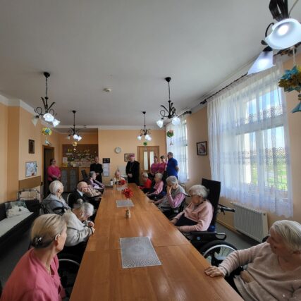 Wczoraj w naszym Domu gościliśmy ks. biskupa Grzegorza Balcerka, który z ks. proboszczem Władysławem Marzęckim odwiedzili naszych Mieszkańców podczas wizytacji pasterskiej naszej Parafii św. Jana Chrzciciela w Lesznie.