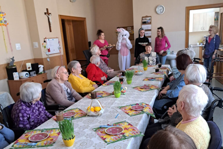 Wielkanocny zajączek Dzisiaj odwiedził nas Wielkanocny zajączek 🙂 A wiedząc, że część naszych Mieszkańców pojedzie na Święta do domu, to przy tej okazji podzieliliśmy się świątecznym jajkiem.