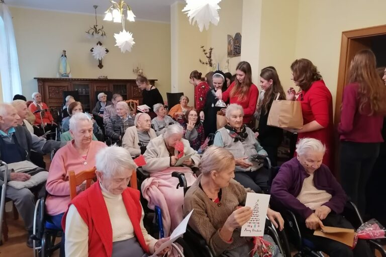 Dziś kolędowaliśmy z młodzieżą z III Liceum w Lesznie. Młodzież złożyła życzenia naszym Mieszkańcom i wręczyła piękne kartki świąteczne oraz drobne prezenty.